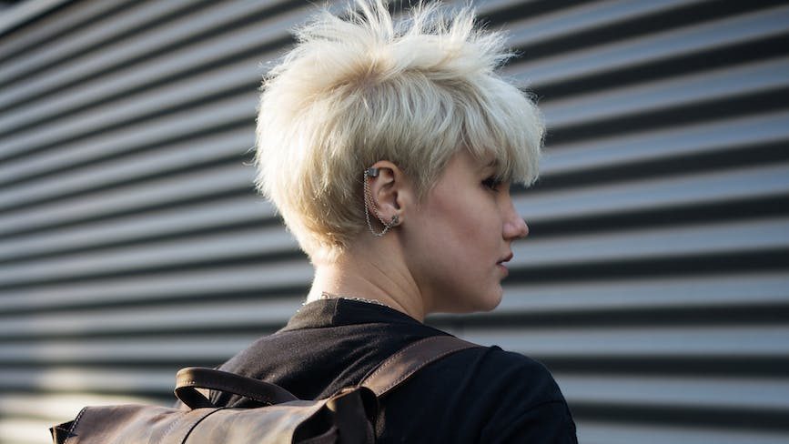 There are a lot of different shapes that short crops can take, and not every cut looks good on every person. Firstly, keep in mind whether you want to look more masculine or feminine. Masculine shapes tend to be square or rectangular while feminine shapes tend to be round or triangular. When looking for the cut that’s right for you, keep in mind what your natural face shape looks like. If you can’t figure it out, ask your hairdresser (we literally got quizzed on it in beauty school)! If you have naturally very round features, but your goal is to look masculine, pick a cut with a strong, rectangular shape. Similarly, if you have traditionally masculine features but are looking to soften your look, try something that gives you roundness through the crown.